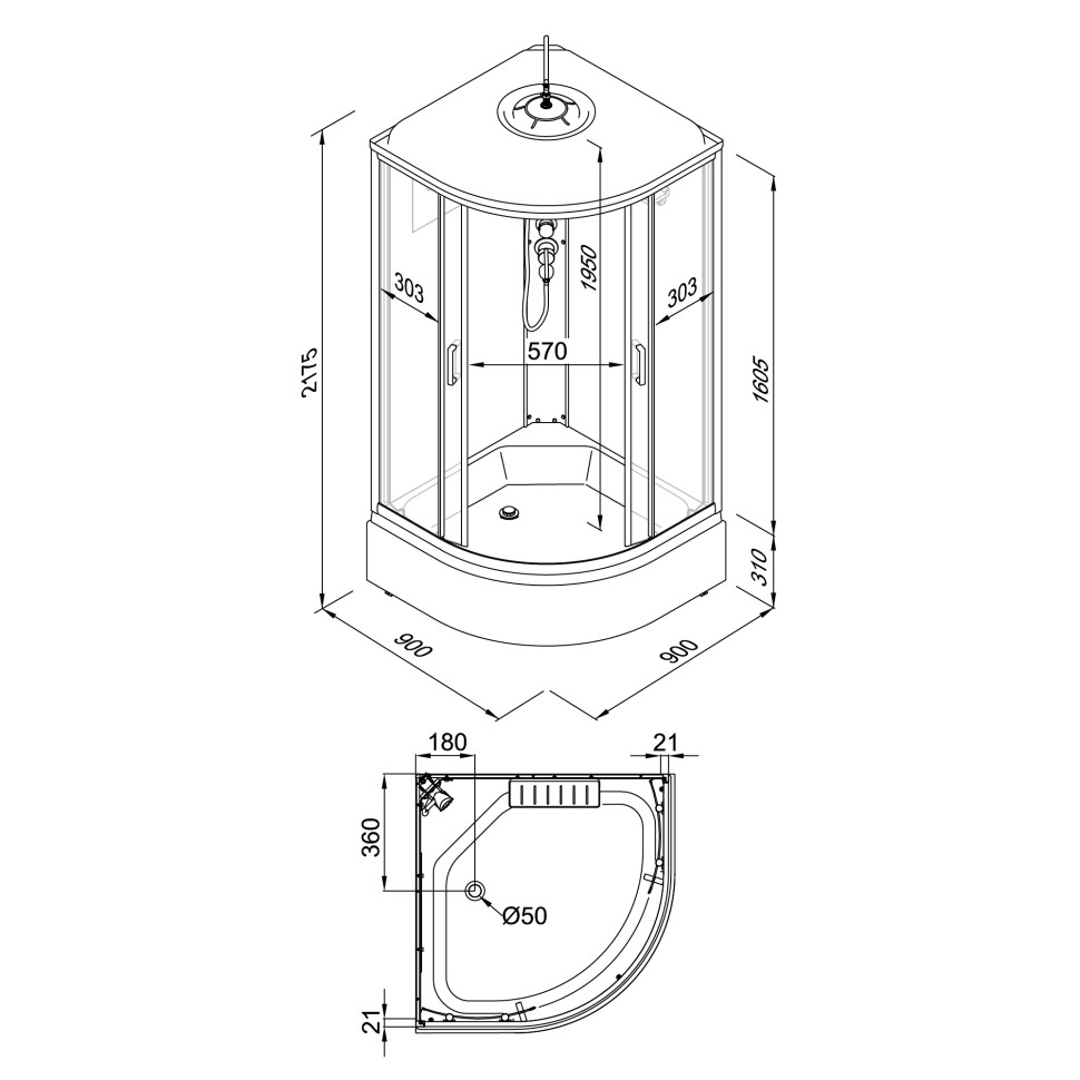 Высота поддона 310 мм