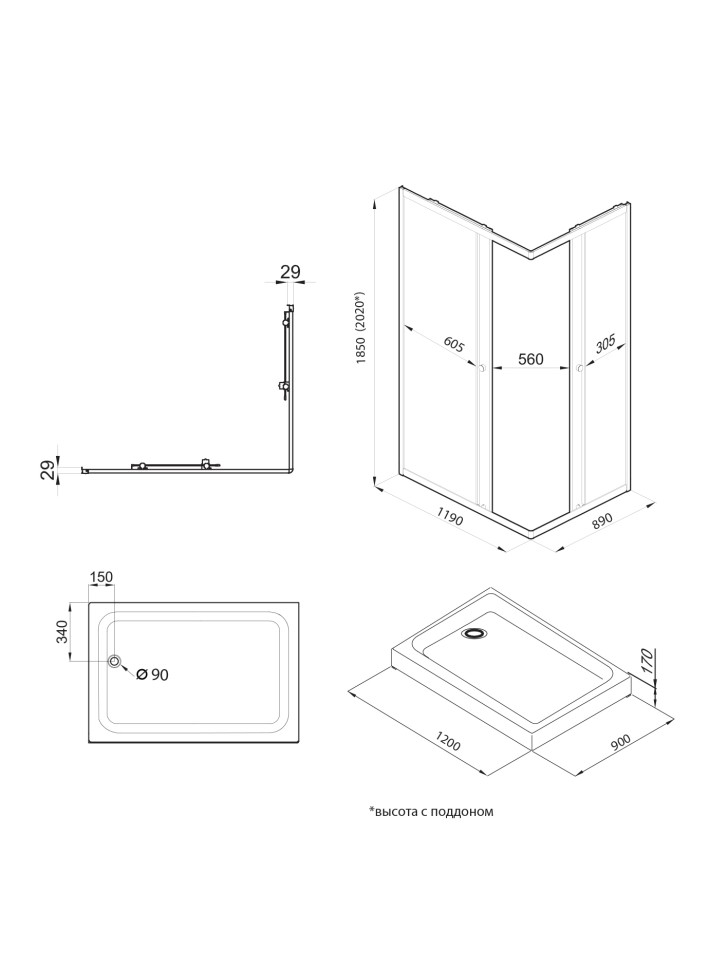 | Высота поддона | 170 мм |