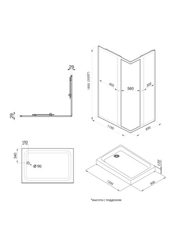 | Сифон душевой кабины | 90 мм |