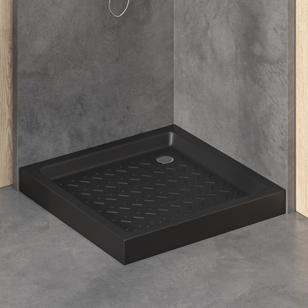 Душевой поддон выполнен из санфарфора, который содержит кварц и полевой шпат. Он предназначен для установки в душевых кабинах, обеспечивая сбор и отвод воды. Поддон черного цвета имеет матовую поверхность и уклон для быстрого слива.