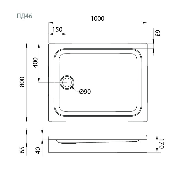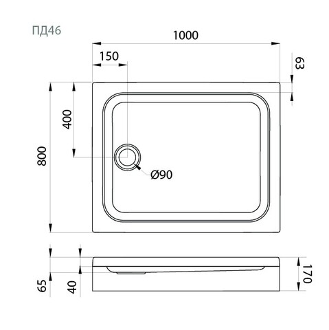 Поддон душевой 100x80 низкий