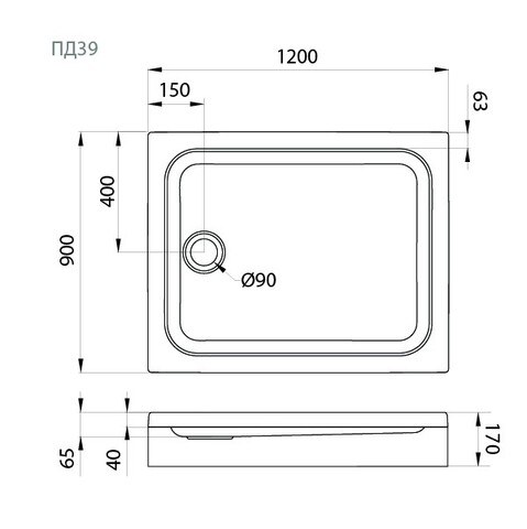 Поддон душевой 120x90 низкий акриловый