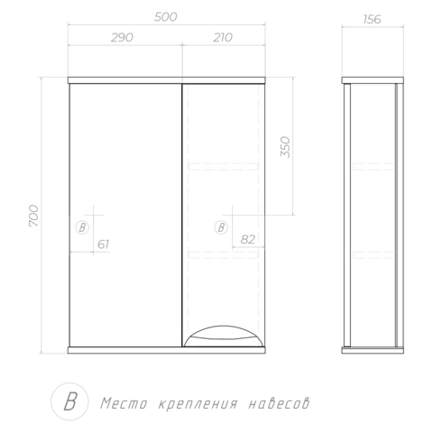Шкаф навесной с зеркалом Callao 500 (правый)