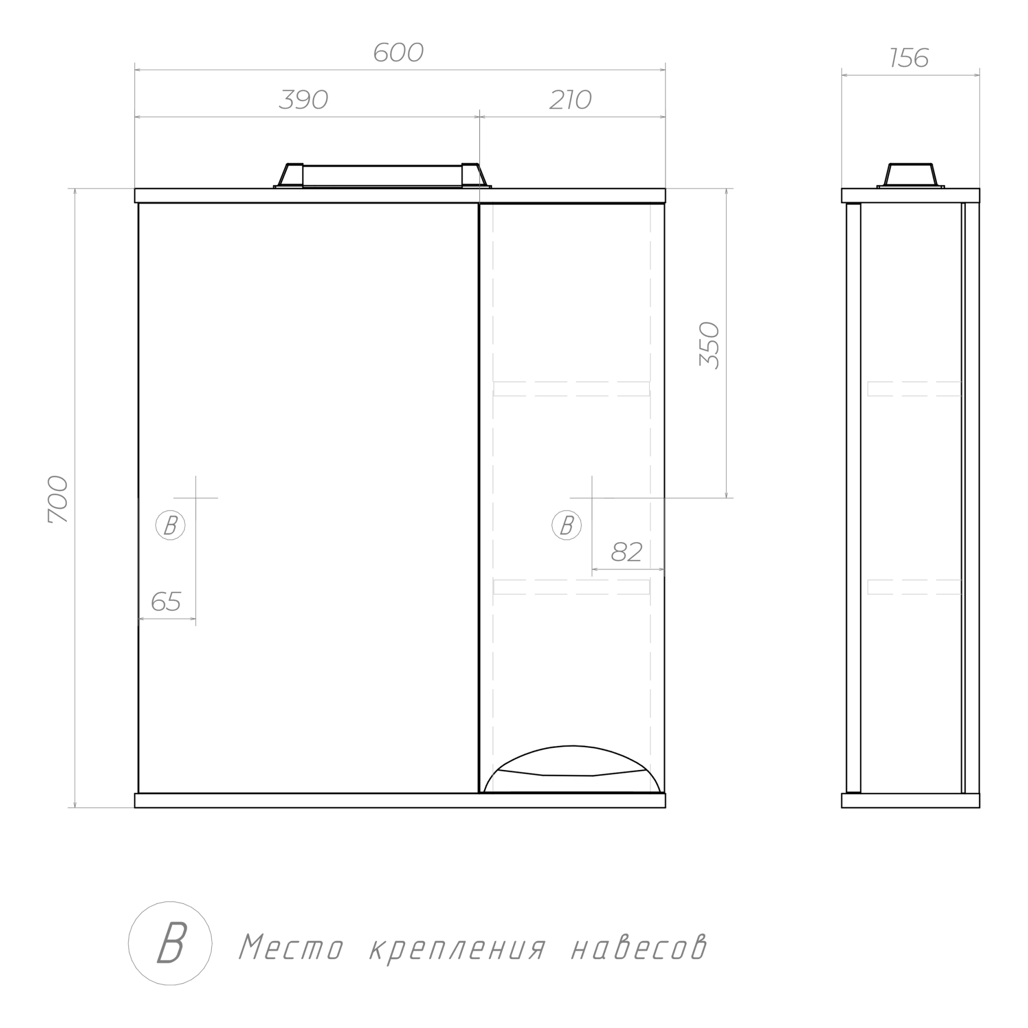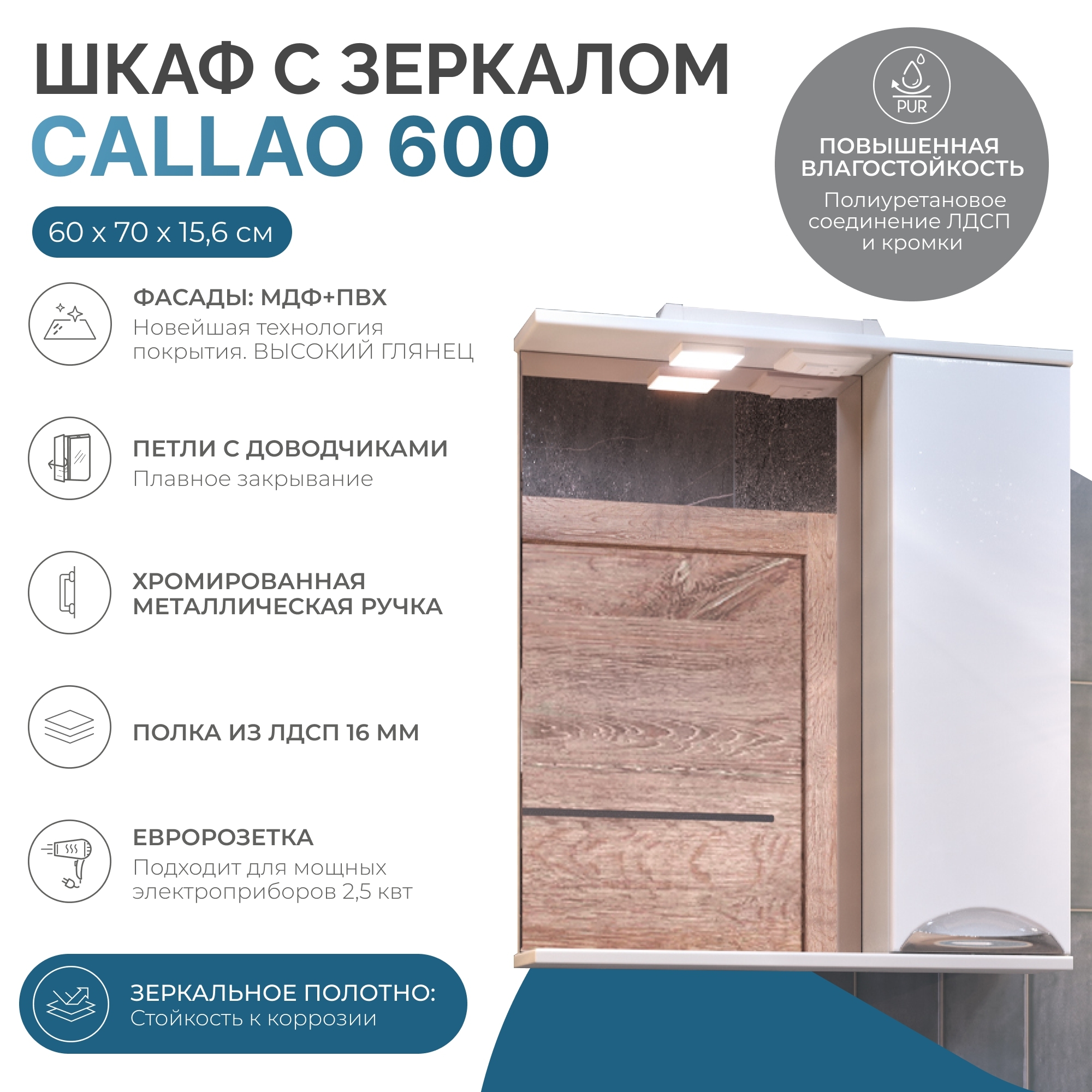 Шкаф навесной с зеркалом Callao 600 (правый) со спотом