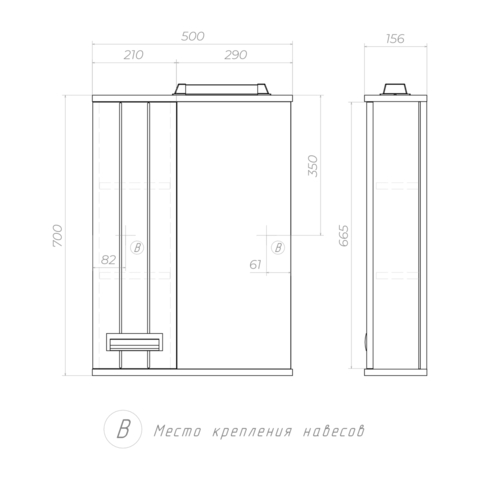 Шкаф навесной с зеркалом Diana 500 (левый) со спотом