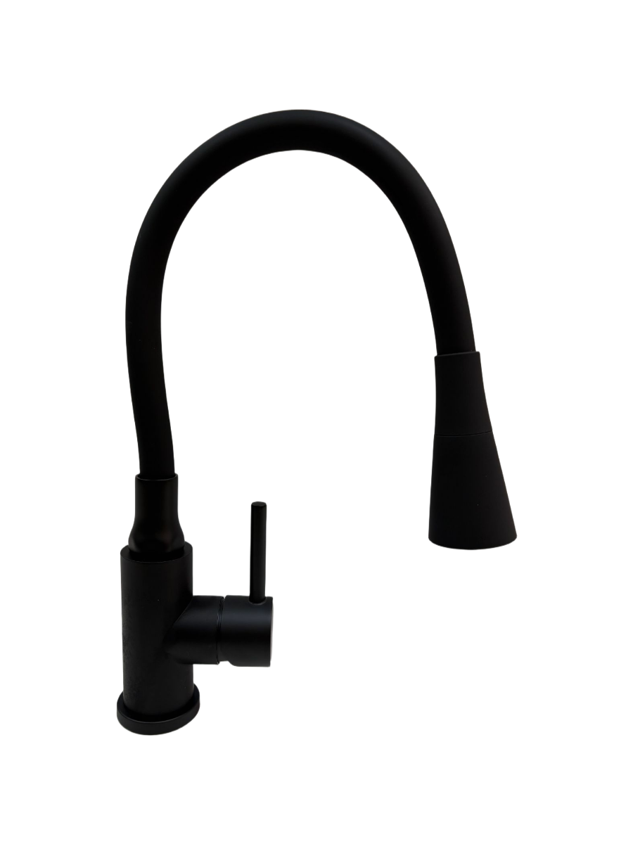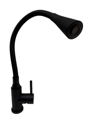 Смеситель для кухни с гибким силиконовым изливом Accoona, однорычажный. Излив можно изогнуть на 360 градусов. Излив имеет два режима: обычный поток и душ.