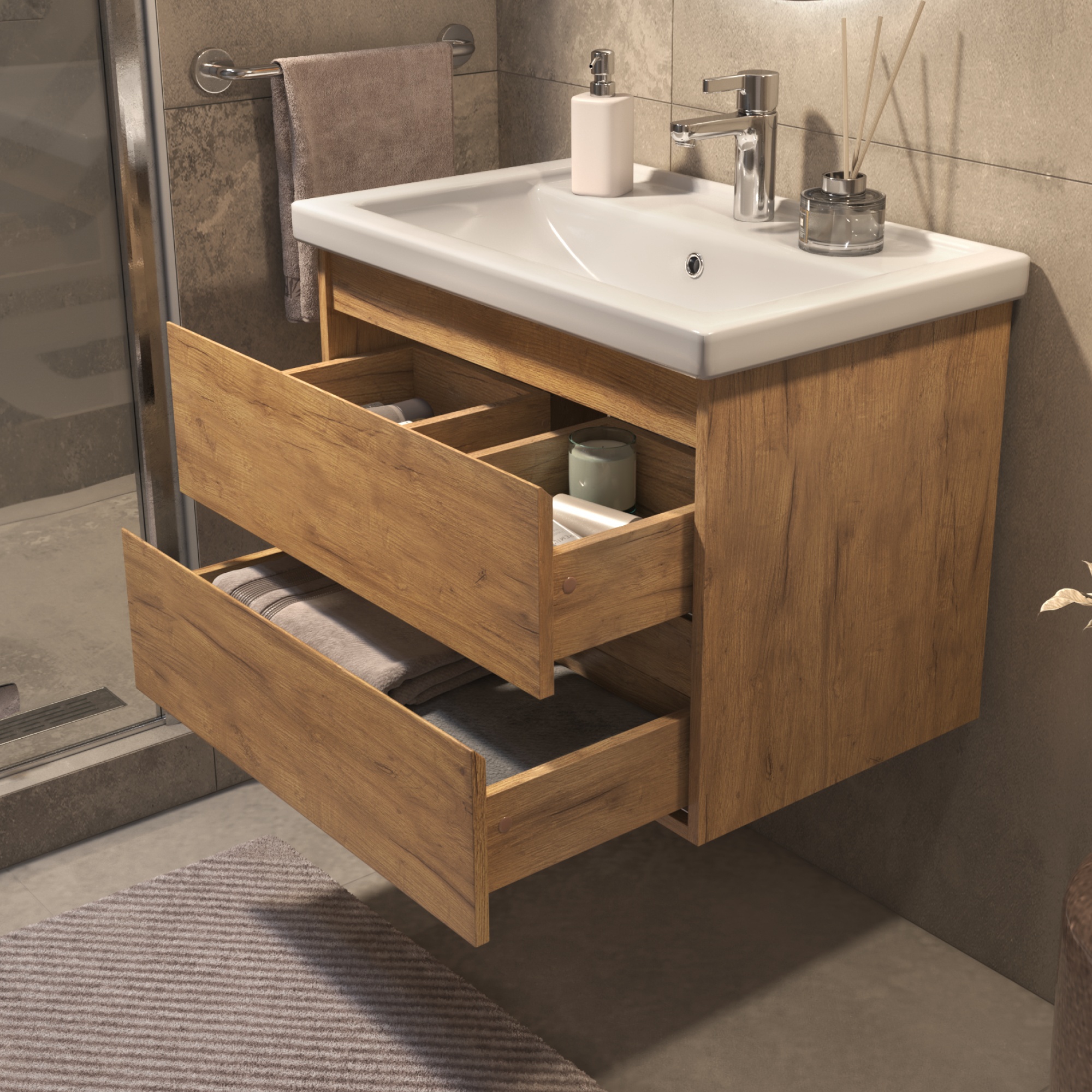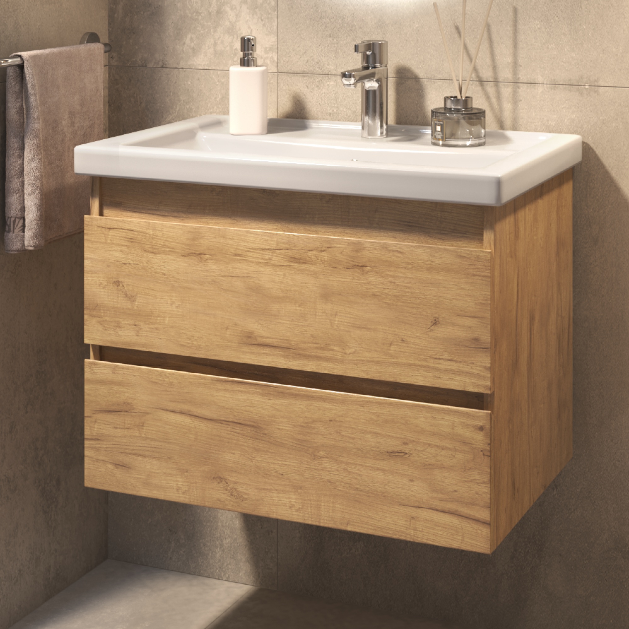 Тумба под раковину Фуста 700-0-2 (Фостер) навесная дуб золотой