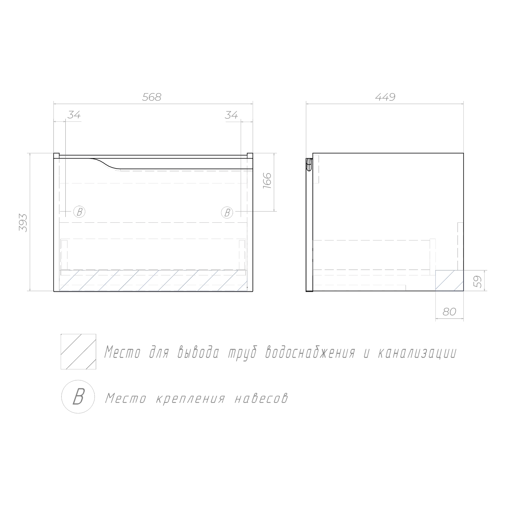 Тумба Neo 60 состоит из корпуса тумбы навесной 247 Neo, Glem, Finlay, Cross 600-0-1 (Como) и фасада Neo 600-0-1.