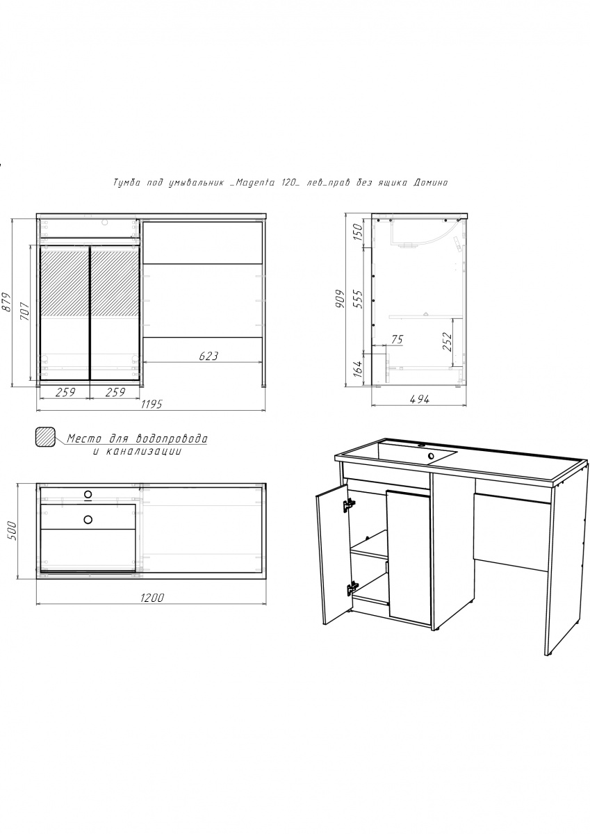 Тумба под умывальник "Маджента 120" лев/прав без ящика Домино для ванной комнаты сочетает в себе стиль и функциональность. Изделие предлагает просторное решение для хранения, идеально дополняя интерьер ванной комнаты. Актуальный дизайн тумбы под накладную раковину создает атмосферу уюта и гармонии. Эта напольная тумбочка станет украшением вашей ванной благодаря полкам для хранения и распашным дверцам.