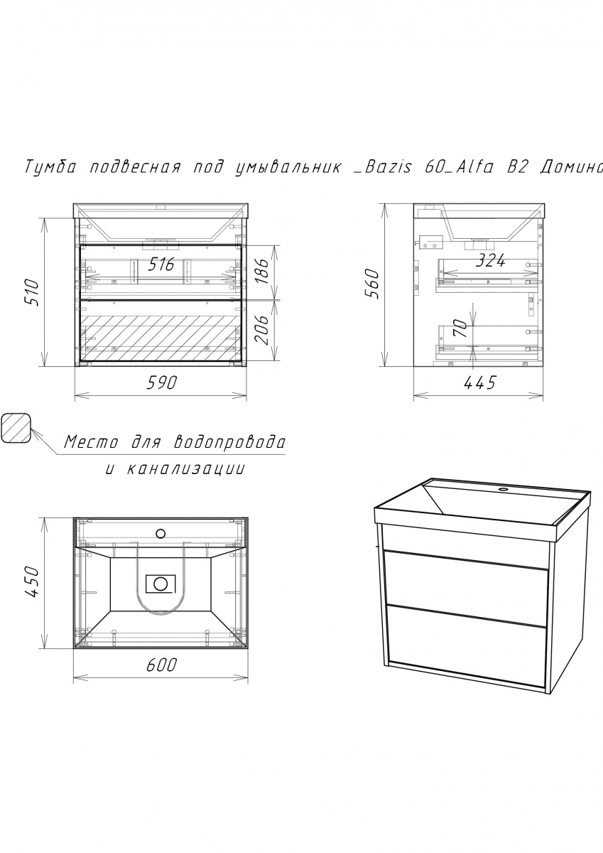 Тумба подвесная под умывальник "UNIT 60" Alfa B2 Домино станет отличным решением для вашей комнаты. Подходит для размещения раковины, благодаря чему вы получите функциональную тумбочку в ванную. Модель ярко выделяется своим современным дизайном и практичностью.