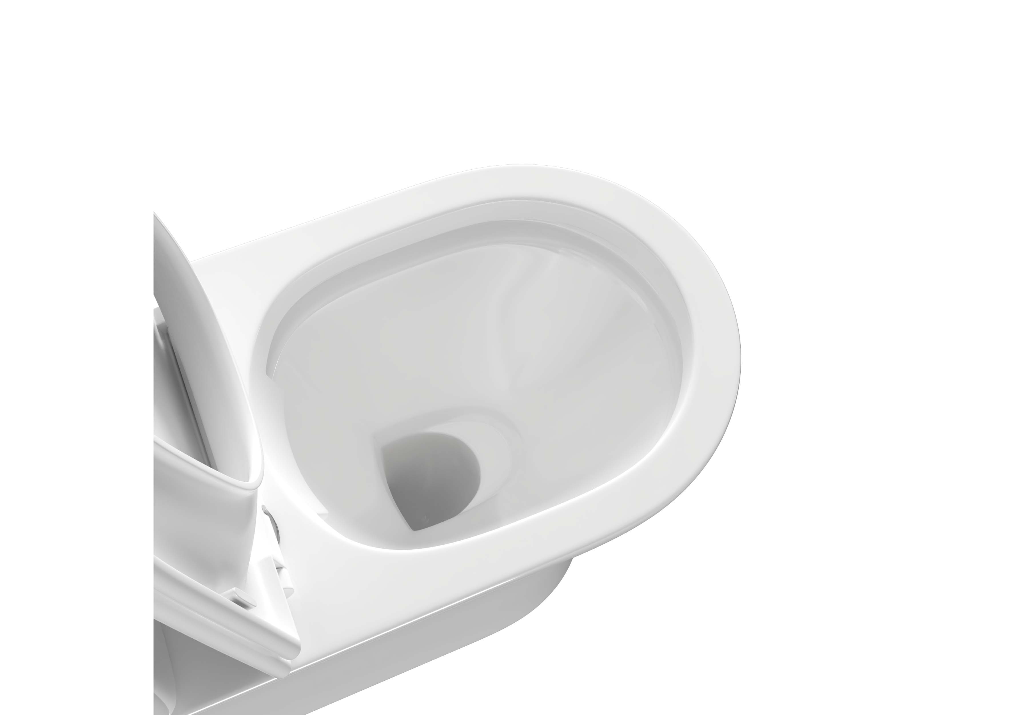 Мощный каскадный смыв полностью омывает поверхность и исключает выплескивание воды.